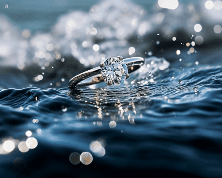 Restored Diamond Engagement Ring Displayed on Rock Near Ocean Engagement Horror Stories Featured Image